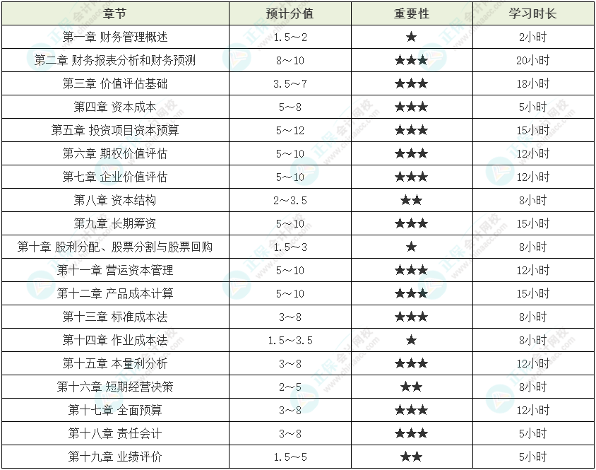 以下是网校针对基础扎实的考生整理的《财务成本管理》各章节建议学习时长,希望对大家有所帮助!