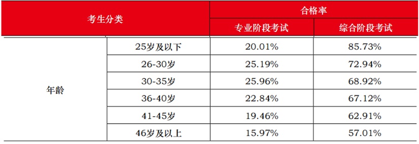 从表中可以看出:30-35岁专业阶段通过率最高。