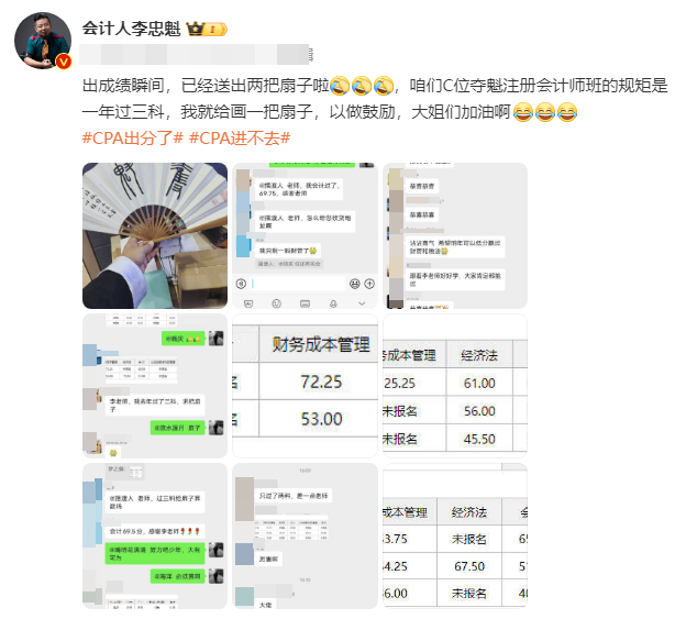 李忠魁老师送扇子了!出成绩瞬间 已经送出两把!
