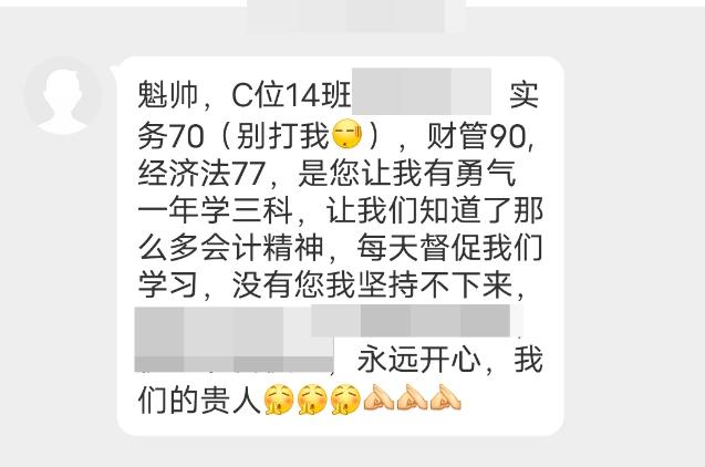 “是您让我有勇气一年学三科,感谢老师每天督促学习!”