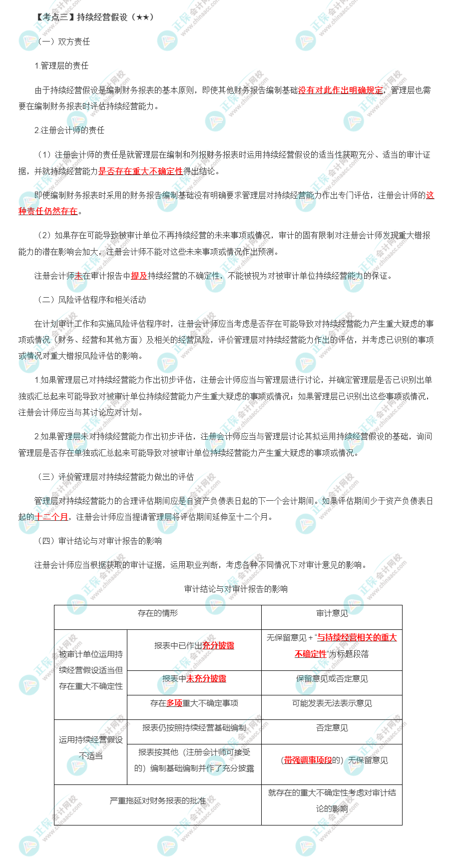 2022年注会《审计》第十七章高频考点3:持续经营假设