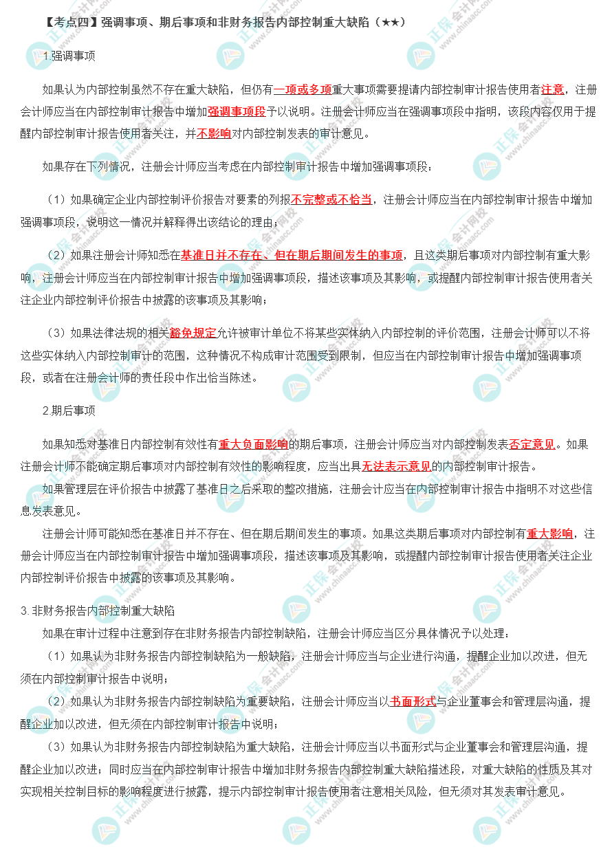 2022注会审计第二十章高频考点4:强调事项 期后事项 非财报内控重大缺陷