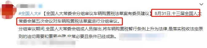 5、车辆购置税,8月31日,人大第五次会议对车辆购置税法草案进行审议。