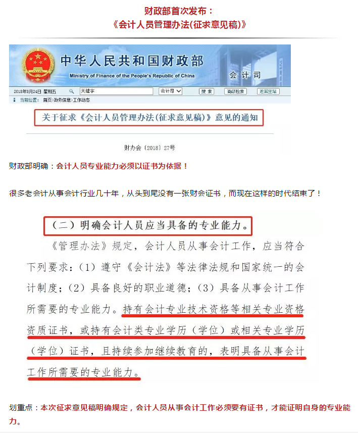 其实在之前的新会计法就有明确要求,从事会计工作将再不需要会计证,会计法将必须的从业证改为是否具备专业能力,看似从事会计行业再也不需要什么证书了,实际上呢?继续教育更加严格了,重要性不言而喻!