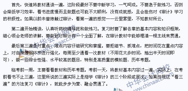 正保会计网校注会考前辅导老师徐永涛有一句针对《审计》科目学习的话至今在考试辅导界广为流传,那就是“看一遍云里雾里,看二遍摸出门道,看三遍融会贯通”,这句话说出来并流传这么广不是没有道理的。以下是徐老师认为《审计》至少要看三遍的解释。