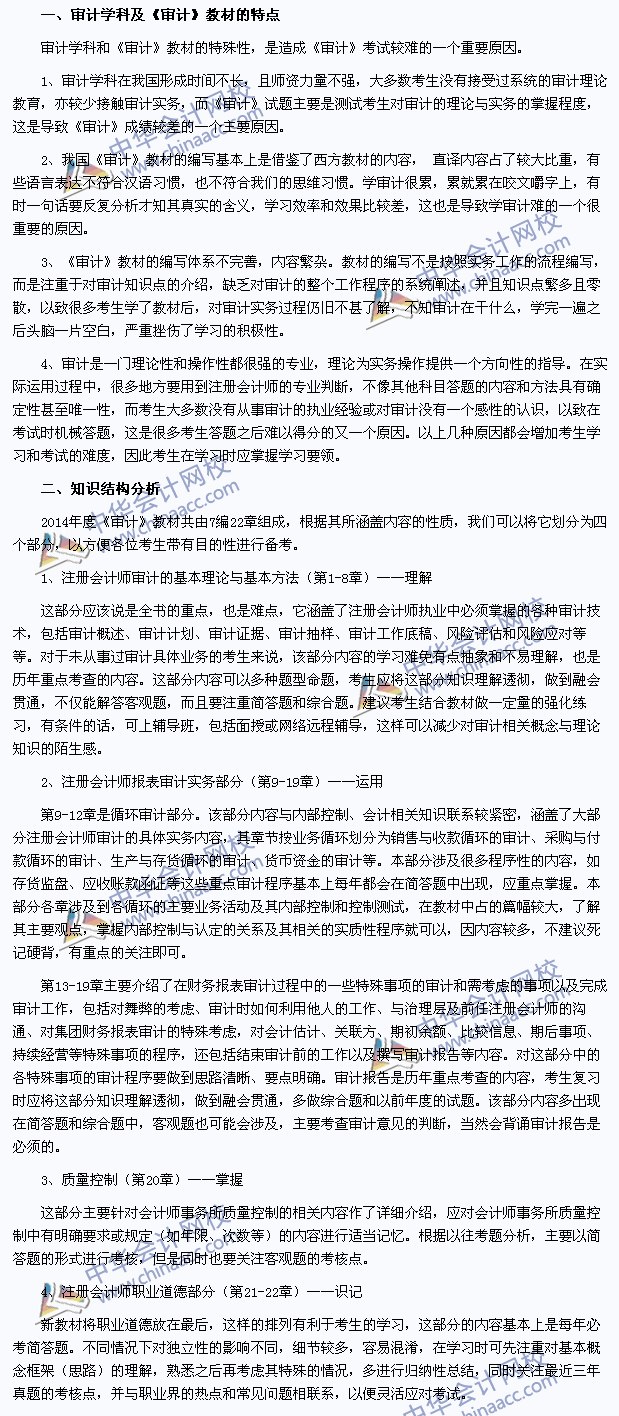 为什么很多考生都觉得《审计》难考呢?正保会计网校从审计学科特点、注册会计师《审计》的教材特点及知识结构方面深入分析,以让广大考生掌握审计学科的特点,抓住学习的重点,掌握学习要领,这样才会觉得《审计》考试合格就没那么难了。
