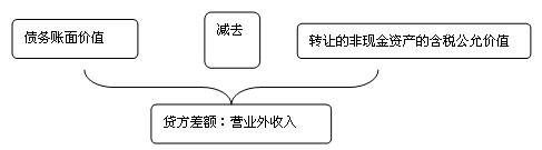 (1)将重组债务的账面价值与转让的非现金资产的公允价值之间的差额,计入营业外收入。