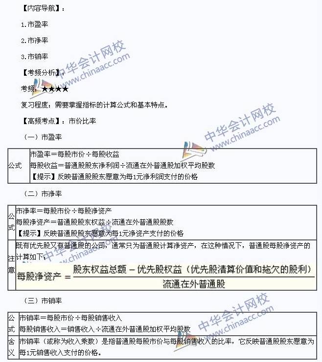 我们一起来学习2014年注册会计师《财务成本管理》高频考点:市价比率。本考点属于《财务成本管理》第二章财务报表分析第二节财务比率分析的内容。