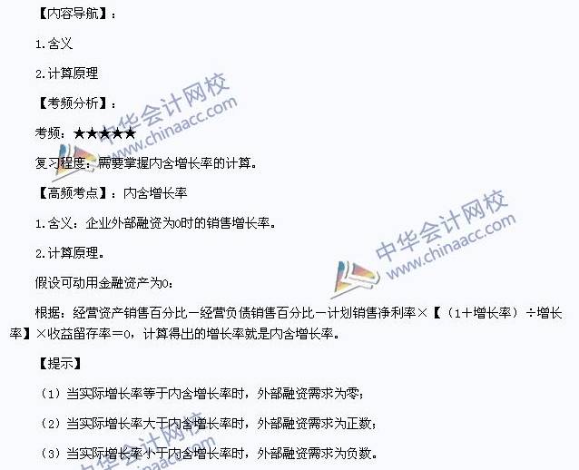 我们一起来学习2014年注册会计师《财务成本管理》高频考点:内含增长率。本考点属于《财务成本管理》第三章长期计划与财务预测第三节增长率与资金需求的内容。