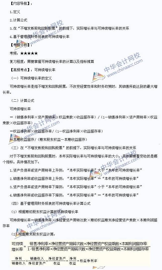 我们一起来学习2014年注册会计师《财务成本管理》高频考点:可持续增长率。本考点属于《财务成本管理》第三章长期计划与财务预测第三节增长率与资金需求的内容。