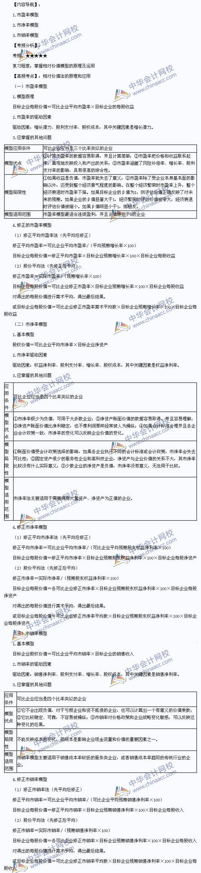 我们一起来学习2014年注册会计师《财务成本管理》高频考点:相对价值法的原理和应用。本考点属于《财务成本管理》第七章企业价值评估第三节相对价值法的内容。