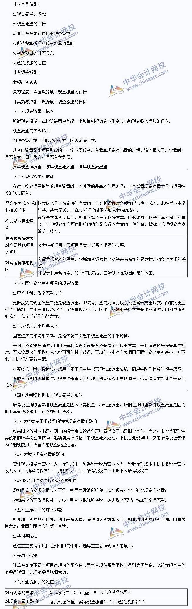 我们一起来学习2014年注册会计师《财务成本管理》高频考点:投资项目现金流量的估计。本考点属于《财务成本管理》第八章资本预算第二节投资项目现金流量的估计的内容。