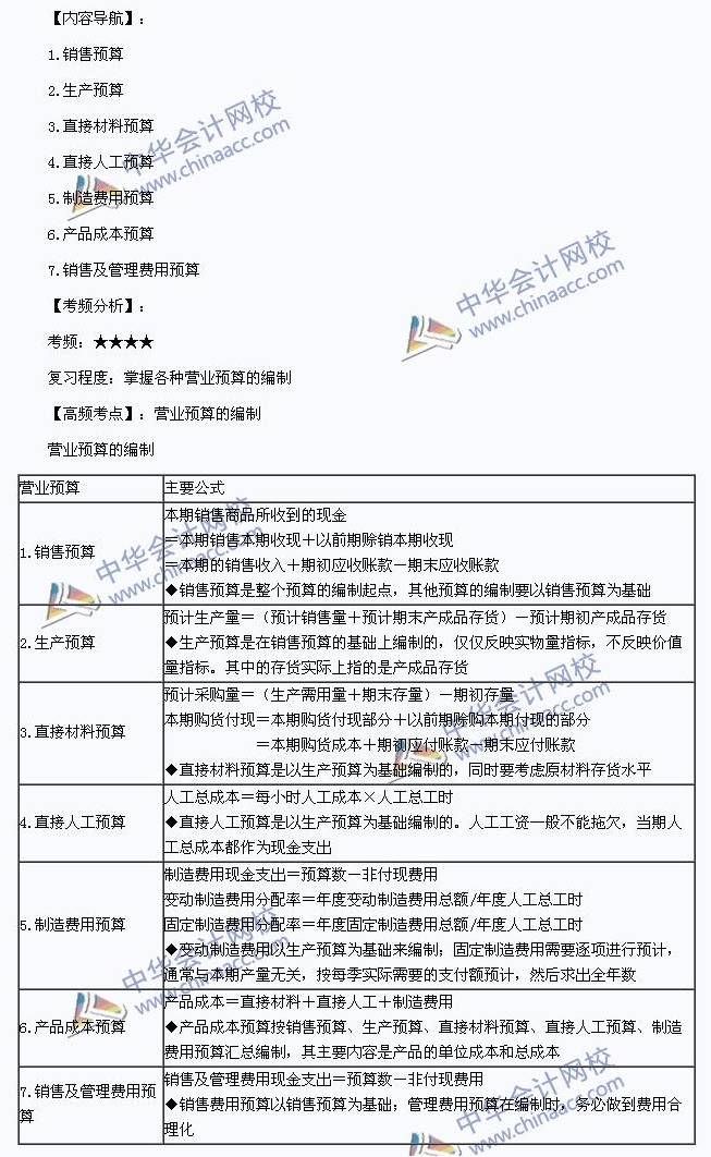 我们一起来学习2014年注册会计师《财务成本管理》高频考点:营业预算的编制。本考点属于《财务成本管理》第十九章短期预算第三节营业预算的编制的内容。