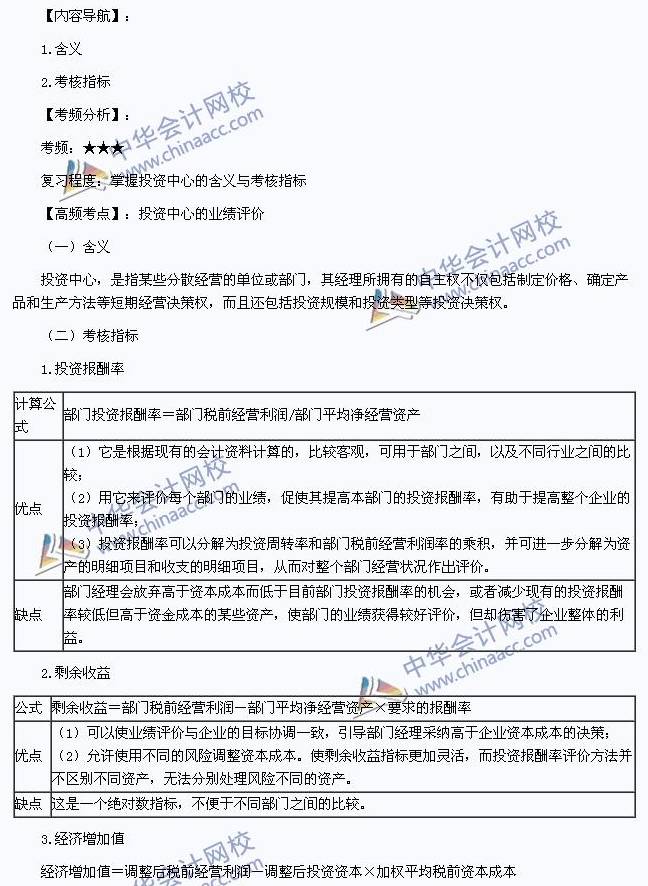 我们一起来学习2014年注册会计师《财务成本管理》高频考点:投资中心的业绩评价。本考点属于《财务成本管理》第二十章业绩评价第二节公司内部的业绩评价的内容。