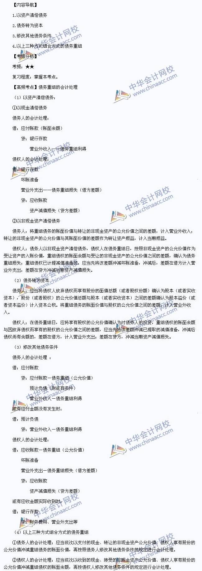 我们一起来学习2014年注册会计师《会计》高频考点:债务重组的会计处理。本考点属于《会计》第十五章债务重组第二节债务重组的会计处理的内容。
