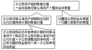 【答案解析】购买日,企业合并商誉=1600-1500×75%=475(万元);包含商誉的资产组的账面价值=1350+475/75%=1983.33(万元),包含商誉的资产组减值金额=1983.33-1500=483.33(万元);应由母公司A公司承担的份额=483.33×75%=362.5(万元)。