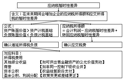 ③可供出售金融资产:需要确认递延所得税负债;因为该资产的账面价值大于计税基础,且是由于公允价值变动造成的,形成应纳税暂时性差异,所以,需要确认递延所得税负债。