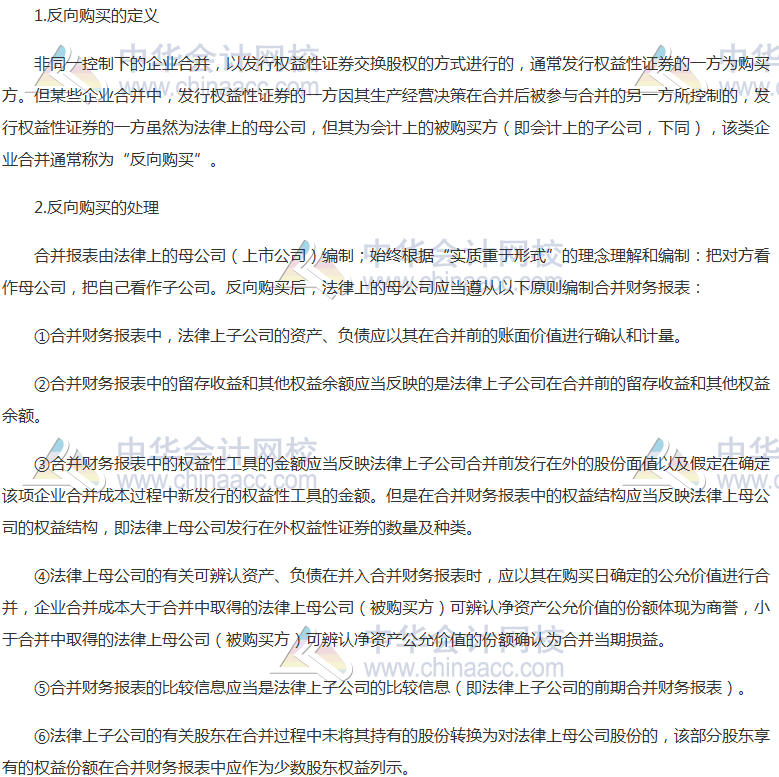 我们一起来学习2017年注册会计师《会计》高频考点:反向购买的处理。本考点属于注会《会计》第八章长期股权投资与企业合并第二节长期股权投资的确认与初始计量的内容。