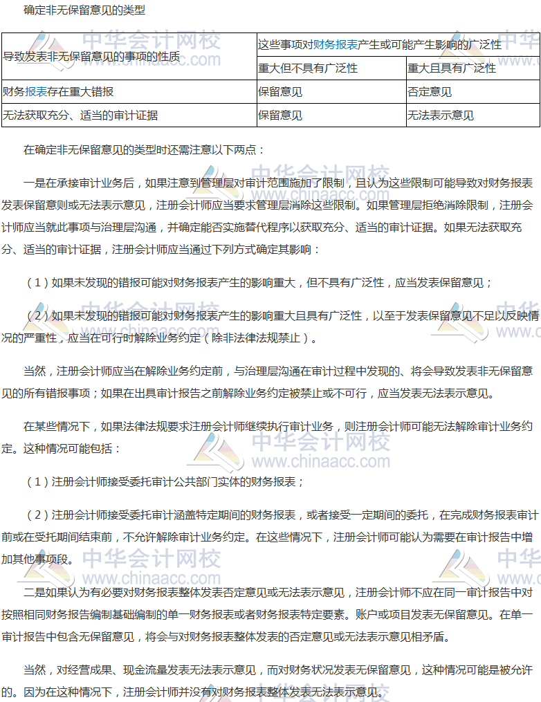 1.非无保留意见的类型