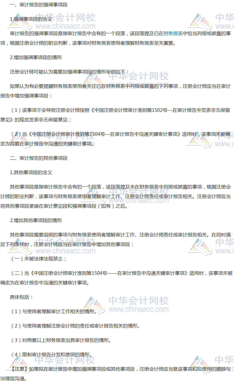 我们一起来学习2017年注册会计师《审计》高频考点:强调事项段与其他事项段。