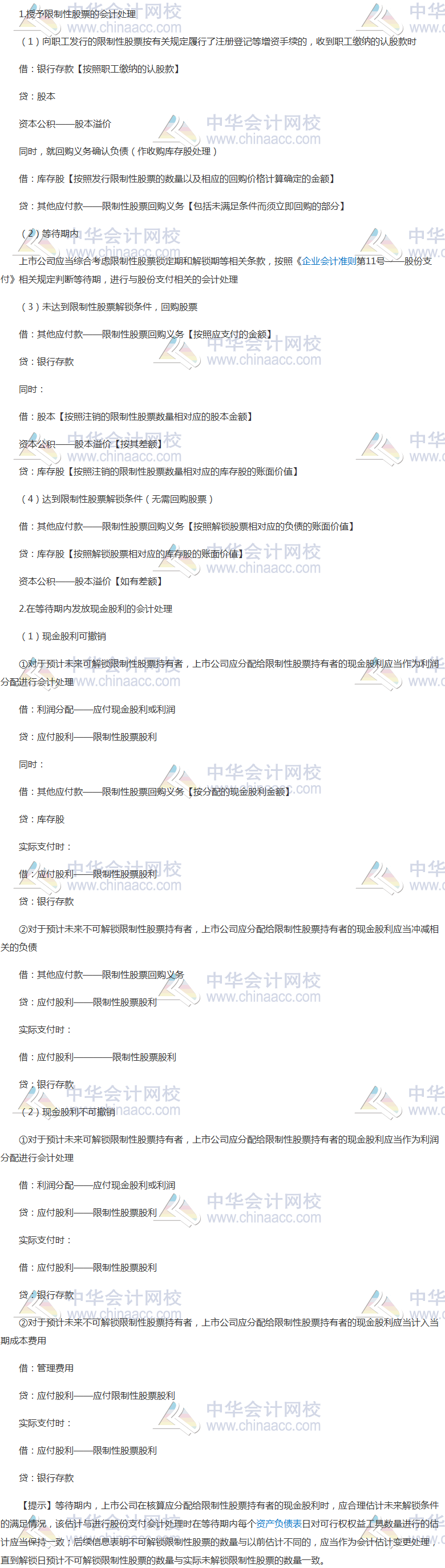 【高频考点】对于授予限制性股票的股权激励计划的会计处理
