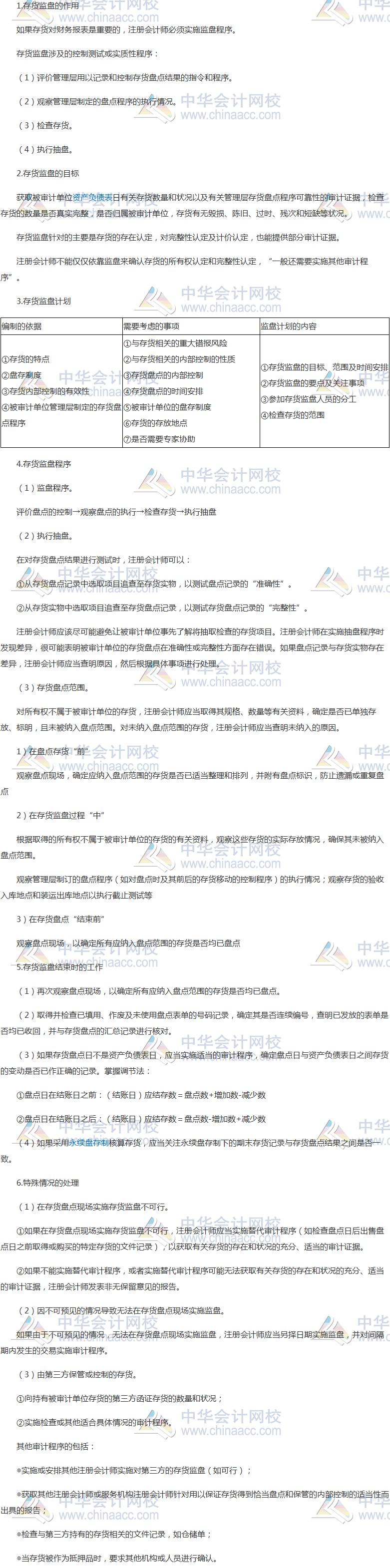 我们一起来学习2017年注册会计师《审计》高频考点:存货监盘。本考点属于注会《审计》第十一章生产与存货循环的审计第三节生产与存货循环的实质性程序的内容。