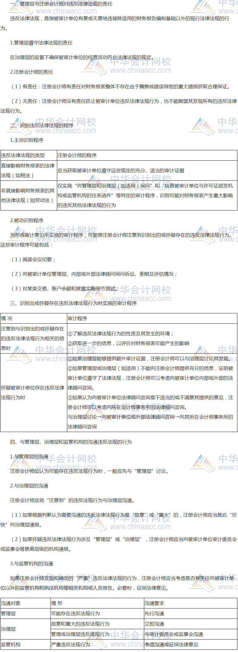 1. 管理层与注册会计师对违反法律法规的责任