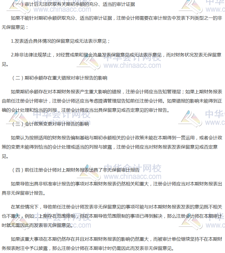 4. 前任注册会计师对上期财务报表出具了非无保留审计报告