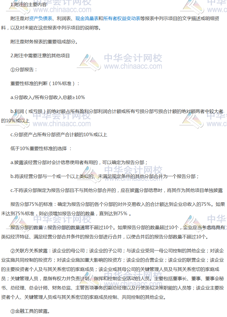 1.附注的主要内容