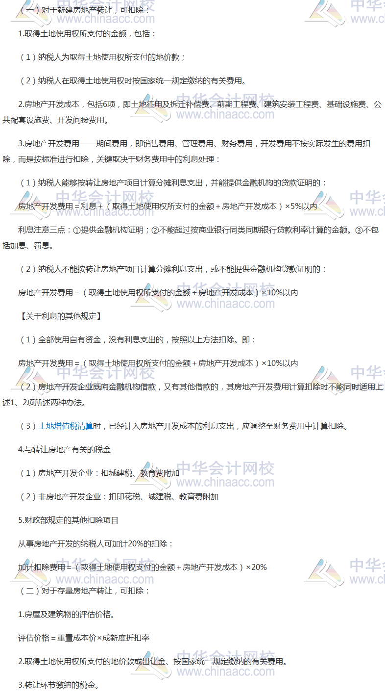 1.对于新建房地产转让准予扣除的项目