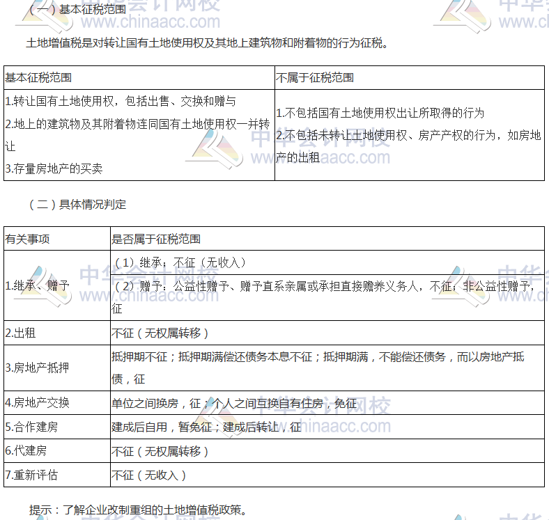 【高频考点】:土地增值税征税范围