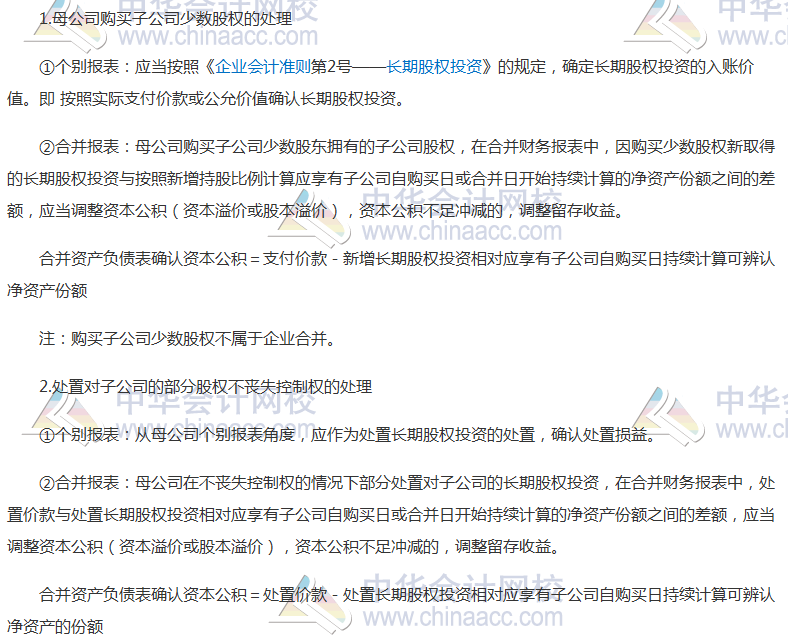 【高频考点】购买少数股权和处置部分股权不丧失控制权的处理