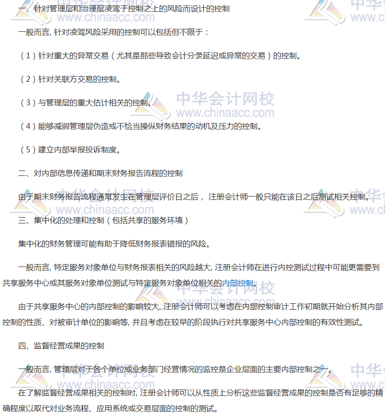 1. 针对管理层和治理层凌驾于控制之上的风险设计的控制