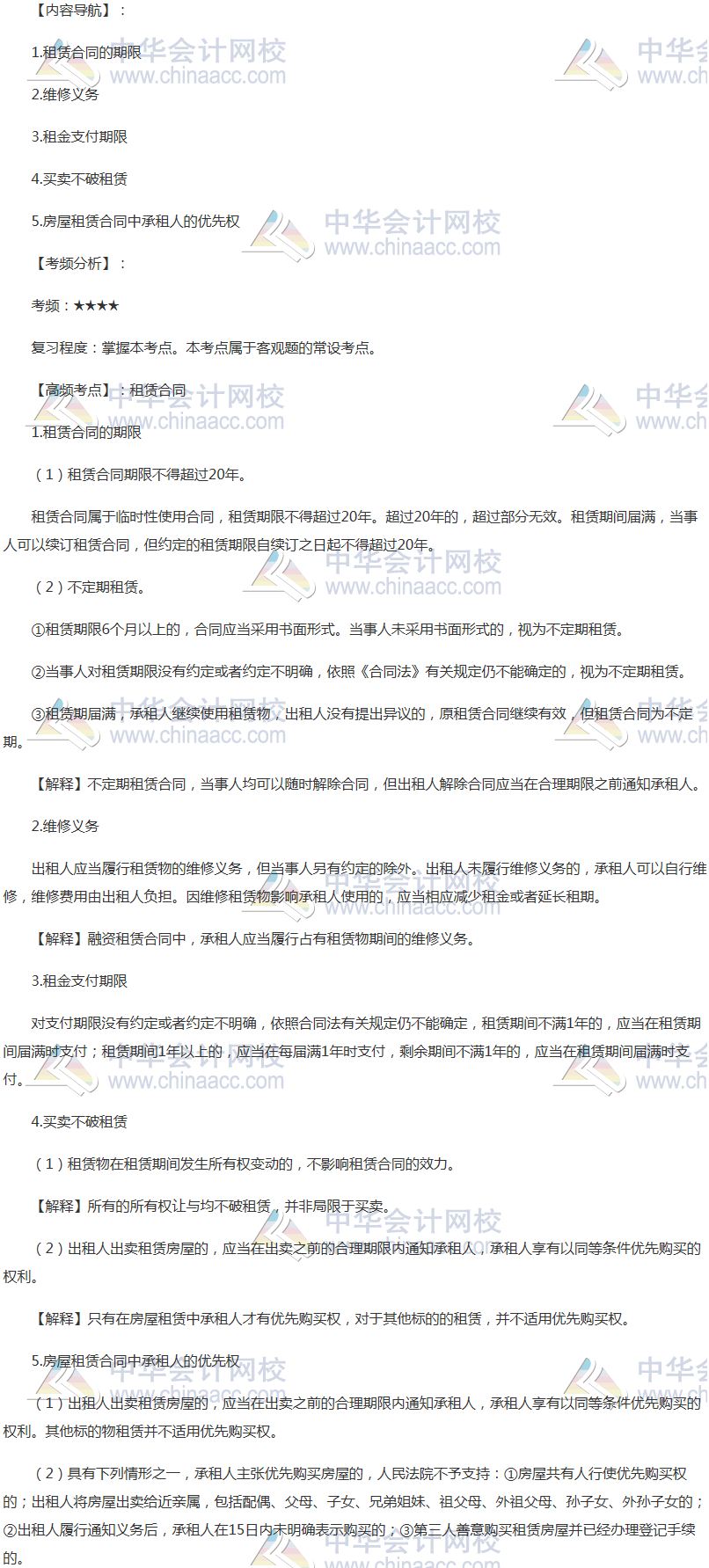 备考时间紧张,抓紧时间抓住重点备考注册会计师吧!正保会计网校教学老师为广大考生整理了高频考点,我们一起来学习2018《经济法》高频考点:租赁合同。本考点属于《经济法》第四章合同法律制度第九节几类主要的有名合同的内容。