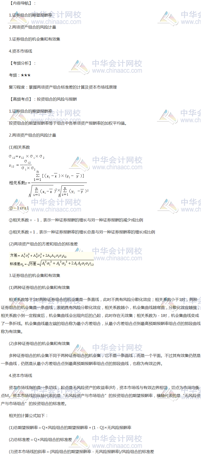 备考时间紧张,抓紧时间抓住重点备考注册会计师吧!正保会计网校教学老师为广大考生整理了高频考点, 我们一起来学习2018《财务成本管理》高频考点:投资组合的风险与报酬。本考点属于《财务成本管理》第三章价值评估基础第三节风险与报酬的内容。