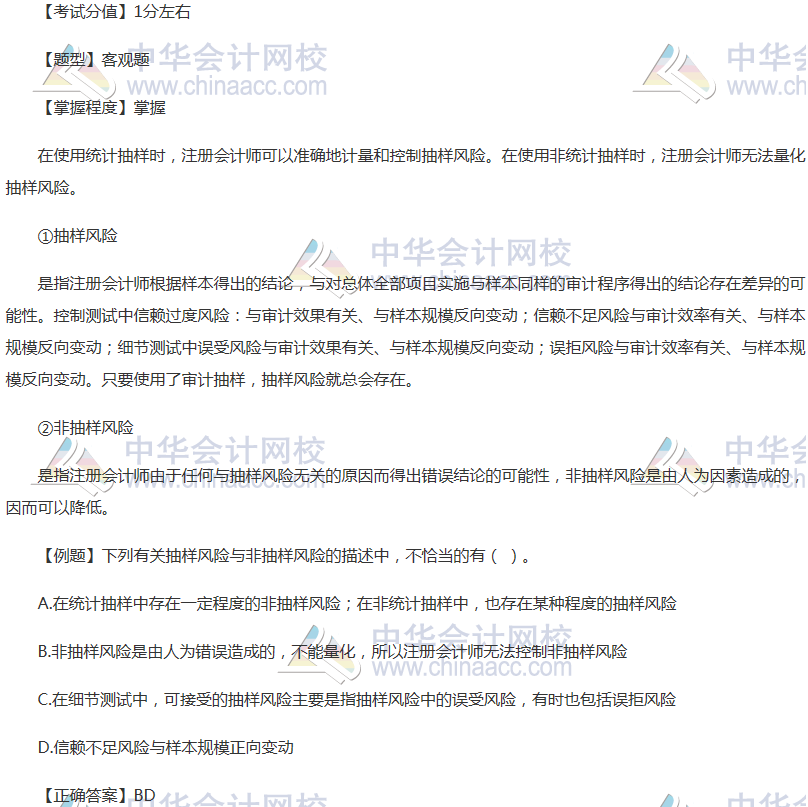 为了帮助2018年注册会计师考试的学员更好的复习备考,正保会计网校教学专家为大家整理了注册会计师《审计》稳拿20分系列知识点,希望对广大考生有帮助。以下为CPA《审计》科目的稳拿20分知识点。 现在让我们来学习稳拿20分系列——知识点7:审计抽样的相关概念。