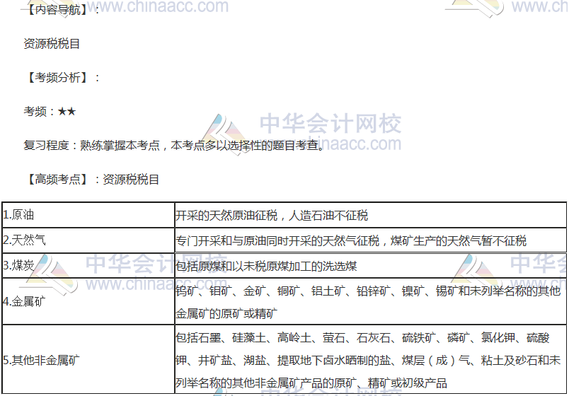 备考时间紧张,抓紧时间抓住重点备考注册会计师吧!正保会计网校教学老师为广大考生整理了高频考点,我们一起来学习2018年《税法》高频考点:资源税税目。本考点属于《税法》第八章资源税法和环境保护税法第一节资源税纳税义务人、税目与税率的内容。