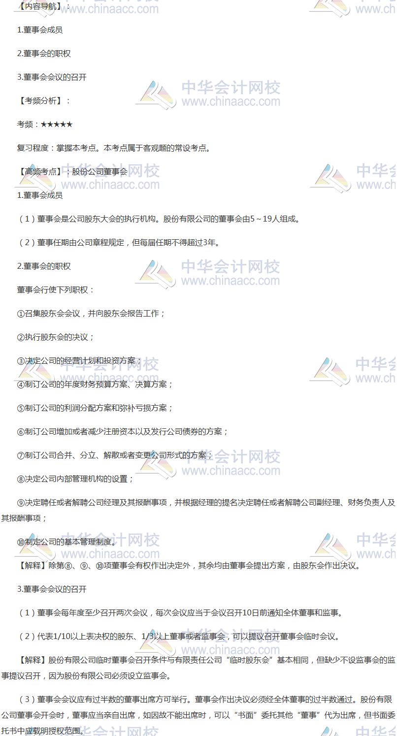 备考时间紧张,抓紧时间抓住重点备考注册会计师吧!正保会计网校教学老师为广大考生整理了高频考点,我们一起来学习2018《经济法》高频考点:股份公司董事会。本考点属于《经济法》第六章公司法律制度第二节股份有限公司的内容。