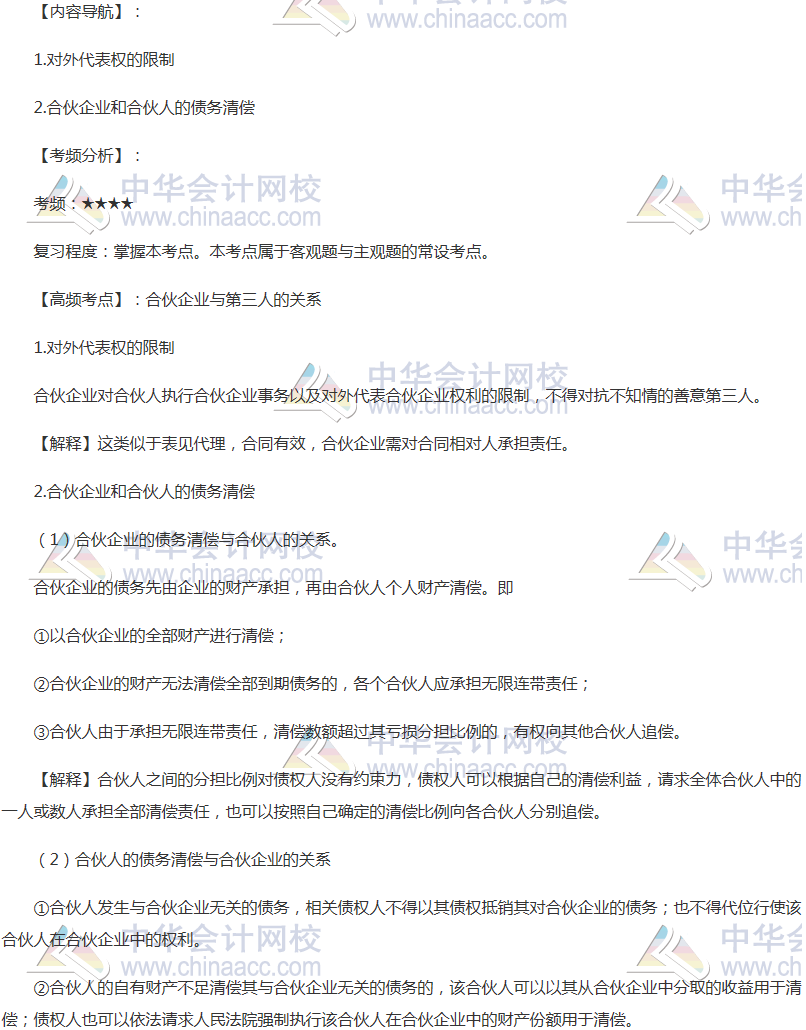 备考时间紧张,抓紧时间抓住重点备考注册会计师吧!正保会计网校教学老师为广大考生整理了高频考点,我们一起来学习2018《经济法》高频考点:合伙企业与第三人的关系。本考点属于《经济法》第五章合伙企业法律制度第二节普通合伙企业的内容。
