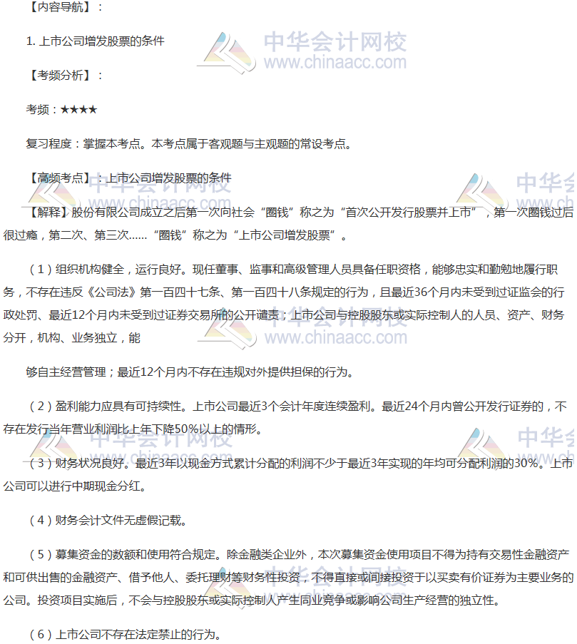 备考时间紧张,抓紧时间抓住重点备考注册会计师吧!正保会计网校教学老师为广大考生整理了高频考点,我们一起来学习2018《经济法》高频考点:上市公司增发股票的条件。本考点属于《经济法》第七章证券法律制度第二节股票的发行的内容。