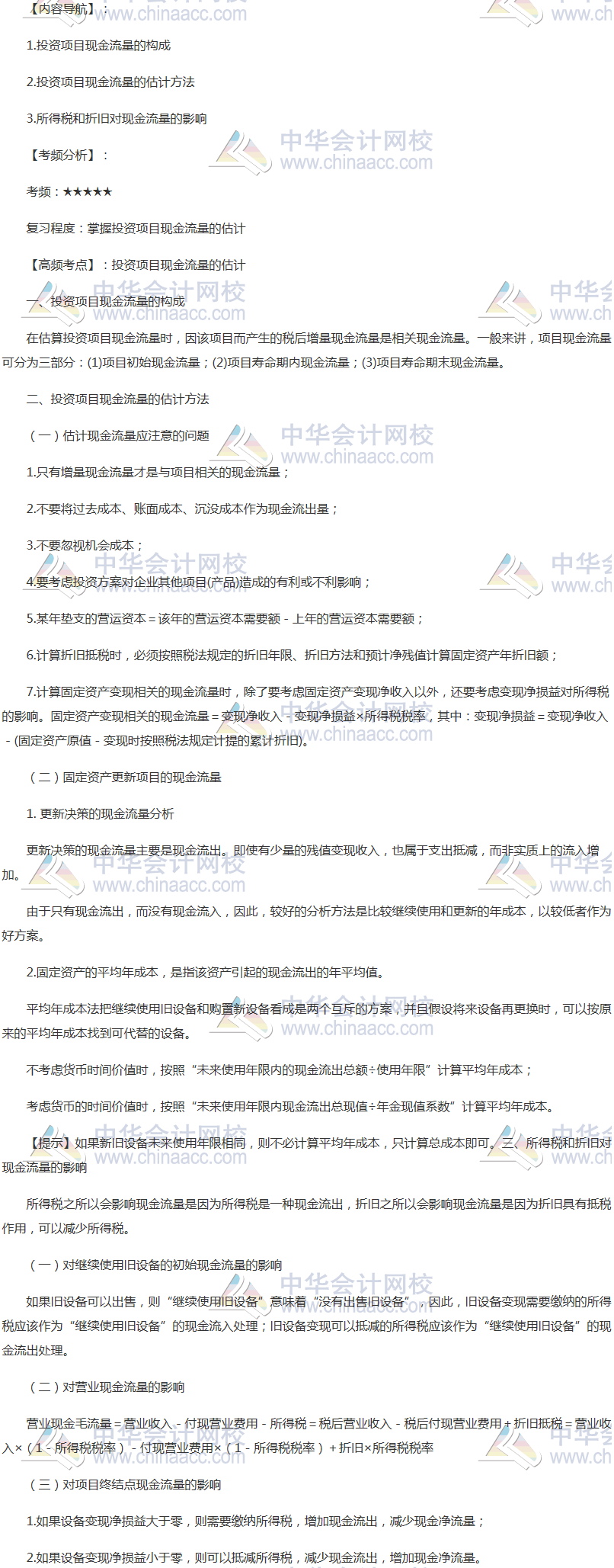 备考时间紧张,抓紧时间抓住重点备考注册会计师吧!正保会计网校教学老师为广大考生整理了高频考点, 我们一起来学习2018年《财务成本管理》高频考点:投资项目现金流量的估计。本考点属于《财务成本管理》第五章投资项目资本预算第三节投资项目现金流量的估计的内容。