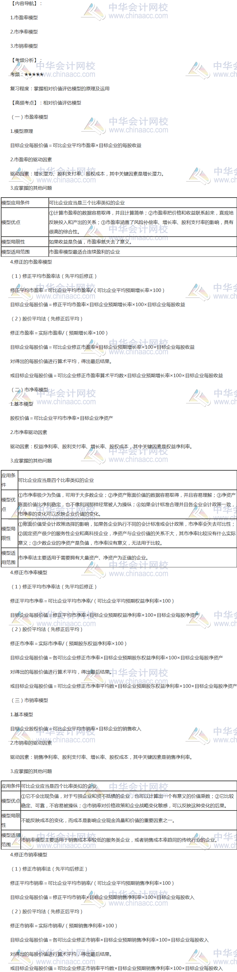 备考时间紧张,抓紧时间抓住重点备考注册会计师吧!正保会计网校教学老师为广大考生整理了高频考点, 我们一起来学习2018《财务成本管理》高频考点:相对价值评估模型。本考点属于《财务成本管理》第八章企业价值评估第二节企业价值评估方法的内容。