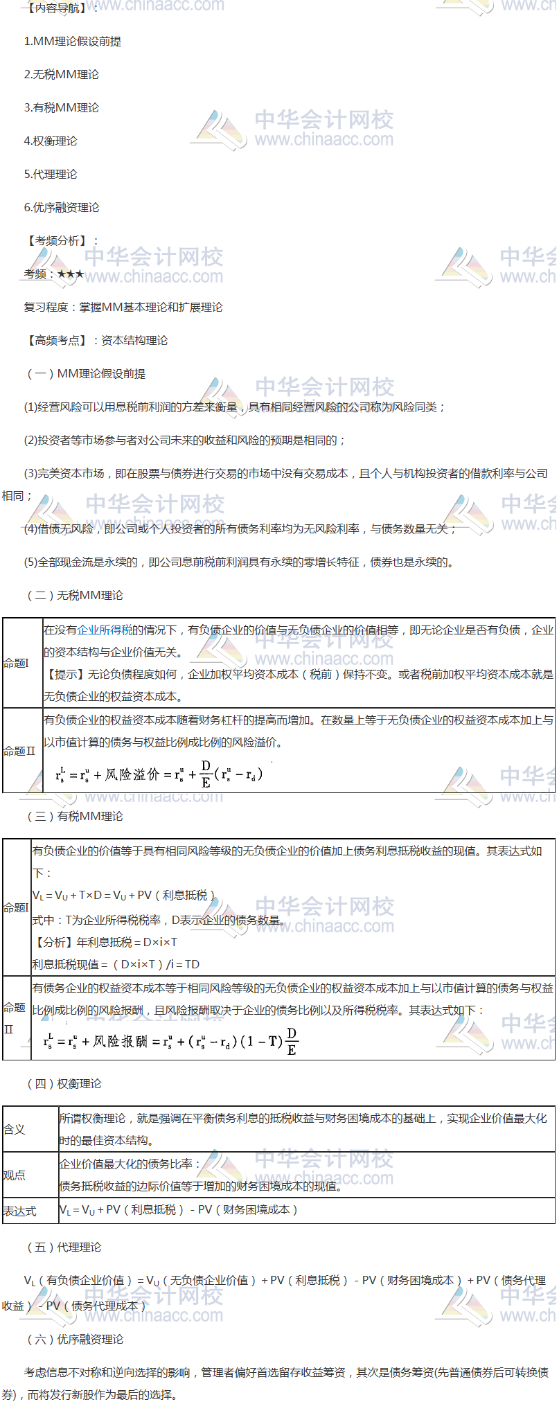 备考时间紧张,抓紧时间抓住重点备考注册会计师吧!正保会计网校教学老师为广大考生整理了高频考点, 我们一起来学习2018年《财务成本管理》高频考点:资本结构理论。本考点属于《财务成本管理》第九章资本结构第一节资本结构理论的内容。