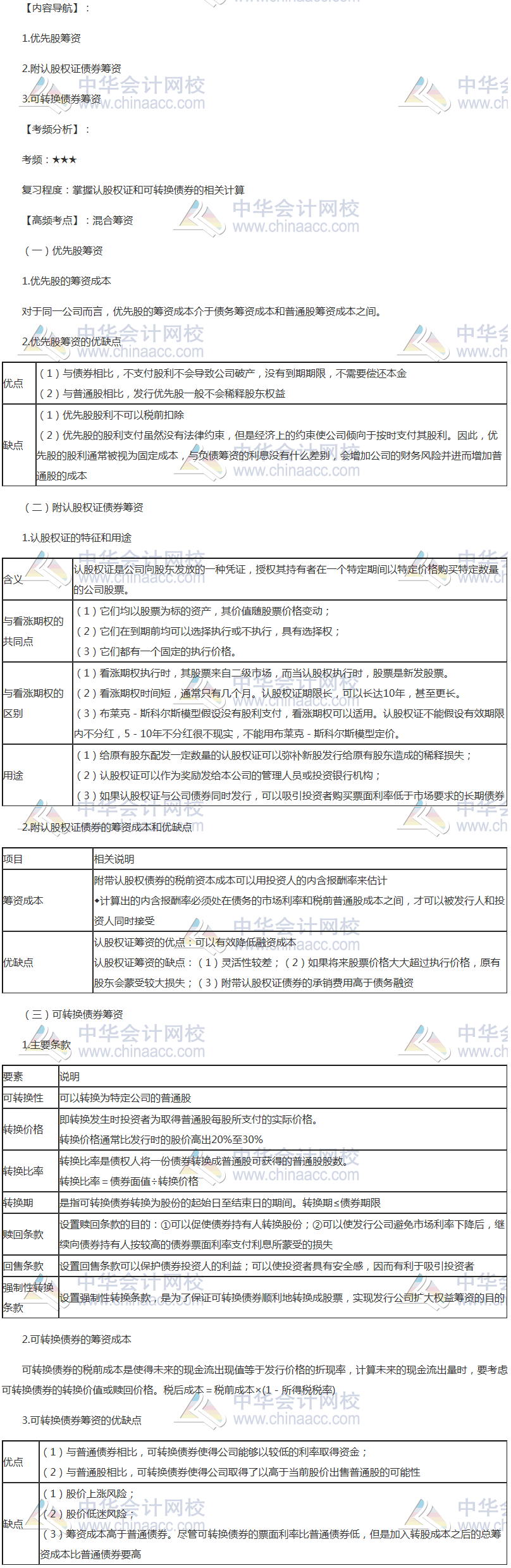 备考时间紧张,抓紧时间抓住重点备考注册会计师吧!正保会计网校教学老师为广大考生整理了高频考点, 我们一起来学习2018年《财务成本管理》高频考点:混合筹资。本考点属于《财务成本管理》第十一章长期筹资第三节混合筹资的内容。