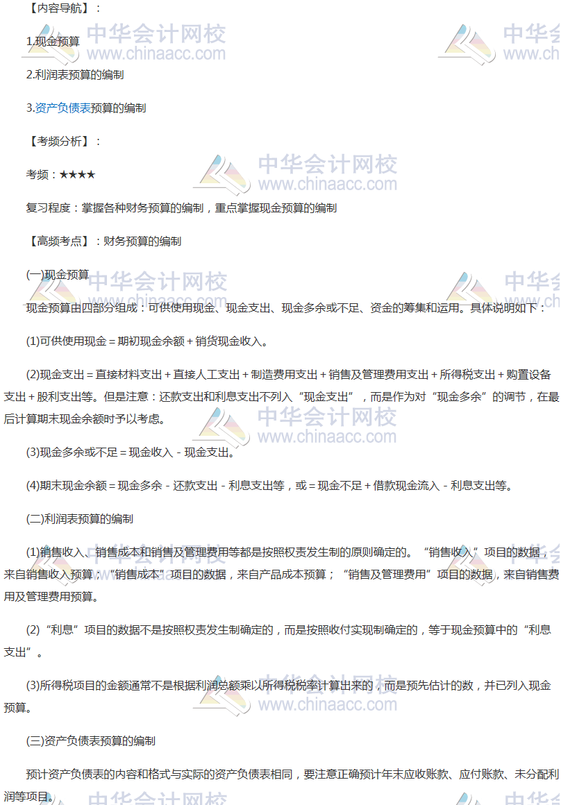 备考时间紧张,抓紧时间抓住重点备考注册会计师吧!正保会计网校教学老师为广大考生整理了高频考点, 我们一起来学习2018年《财务成本管理》高频考点:财务预算的编制。本考点属于《财务成本管理》第十八章全面预算第四节财务预算的编制的内容。