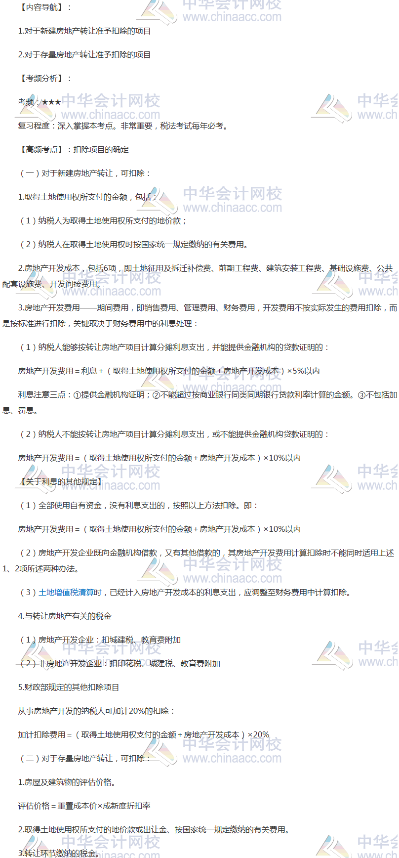 备考时间紧张,抓紧时间抓住重点备考注册会计师吧!正保会计网校教学老师为广大考生整理了高频考点,我们一起来学习2018《税法》高频考点:扣除项目的确定。本考点属于《税法》第十章房产税法、契税法和土地增值税法第三节土地增值税税率、应税收入与扣除项目的内容。