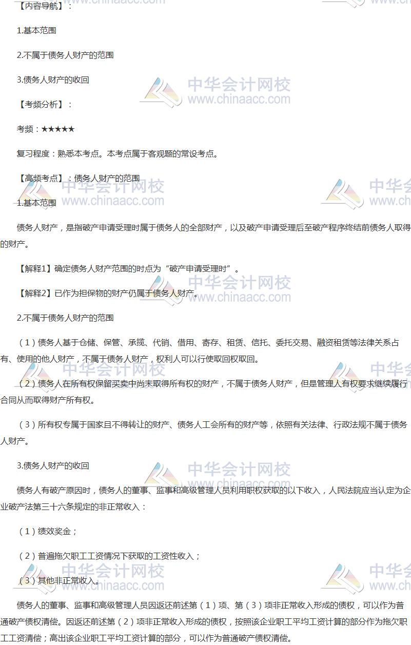 备考时间紧张,抓紧时间抓住重点备考注册会计师吧!正保会计网校教学老师为广大考生整理了高频考点,我们一起来学习2018《经济法》高频考点:债务人财产的范围。本考点属于《经济法》第八章企业破产法律制度第四节债务人财产的内容。
