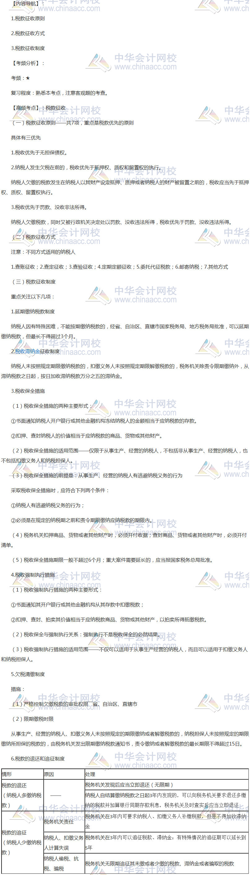 备考时间紧张,抓紧时间抓住重点备考注册会计师吧!正保会计网校教学老师为广大考生整理了高频考点,我们一起来学习2018年《税法》高频考点:税款征收。本考点属于《税法》第十三章税收征收管理法第三节税款征收的内容。