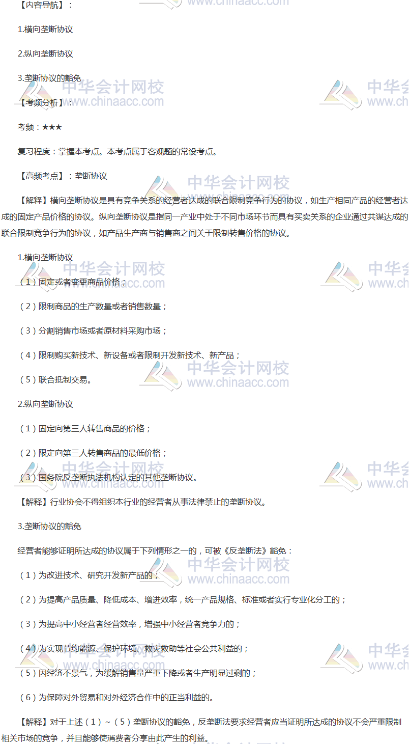 备考时间紧张,抓紧时间抓住重点备考注册会计师吧!正保会计网校教学老师为广大考生整理了高频考点,我们一起来学习2018《经济法》高频考点:垄断协议。本考点属于《经济法》第十一章反垄断法律制度第二节垄断协议规制制度的内容。
