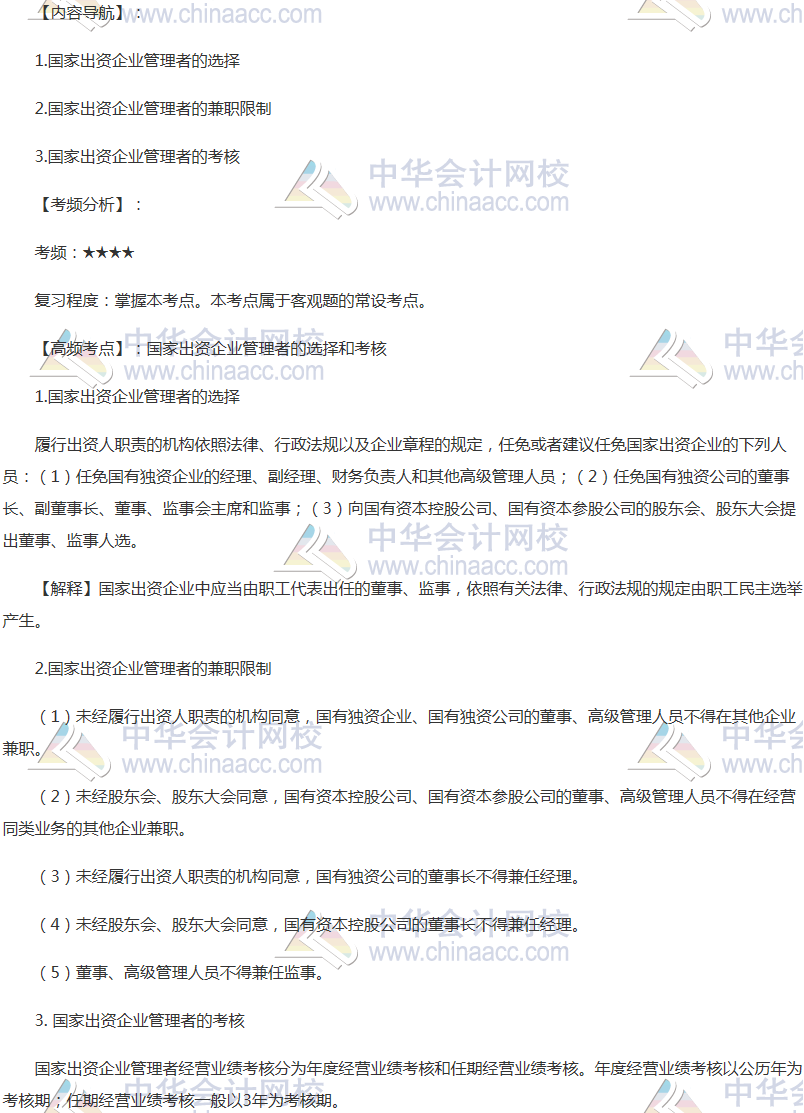 备考时间紧张,抓紧时间抓住重点备考注册会计师吧!正保会计网校教学老师为广大考生整理了高频考点,我们一起来学习2018《经济法》高频考点:国家出资企业管理者的选择和考核。本考点属于《经济法》第十章企业国有资产法律制度第一节企业国有资产法律制度概述的内容。